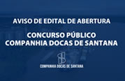 O Diretor-Presidente da Companhia Docas de Santana – CDSA, no uso de suas atribuições legais, torna pública a realização de concurso público regido pelo Edital n° 01/2024 – Edital de Abertura, destinado ao preenchimento de vagas de cargos do quadro de pessoal efetivo de nível médio. O edital de abertura está disponível na página oficial do concursono portal da FADESP (https://portalfadesp.org.br), instituição organizadora do concurso.